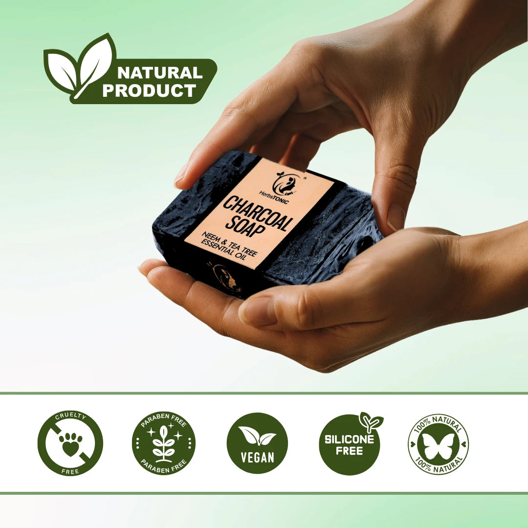 Transform your skincare ritual with HerbsTonic’s Activated Charcoal Soap, a premium blend of activated charcoal, botanical extracts, and gentle exfoliants that work together to deeply cleanse, detoxify, and revitalize your skin.