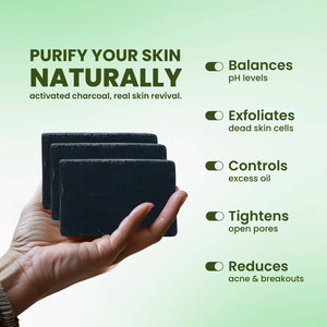 Detoxifies skin by drawing out dirt and impurities with Activated Charcoal.