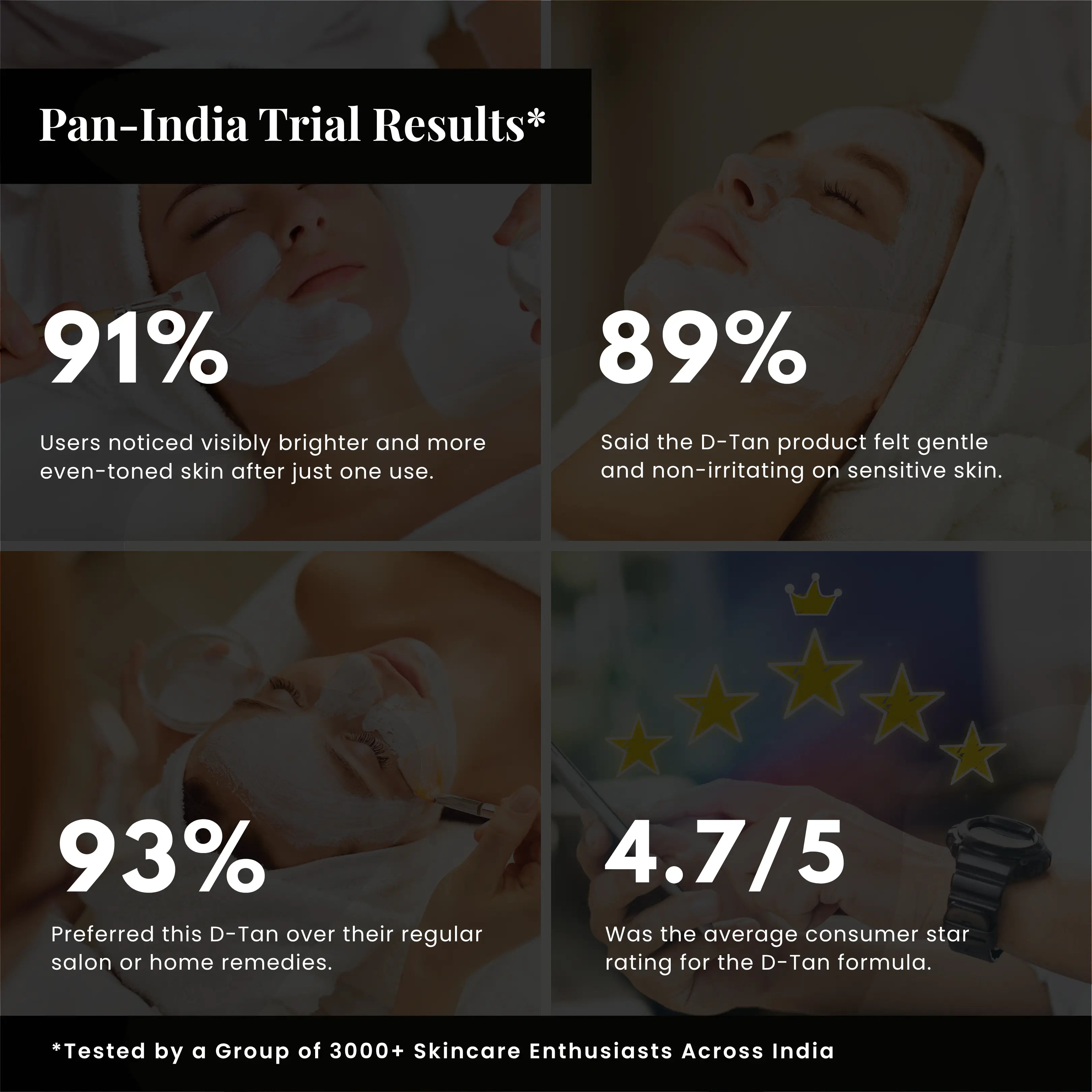 Crafted for both men and women, this potent D-Tan face pack harnesses the power of natural ingredients to deeply cleanse, hydrate, and revitalize all skin types.