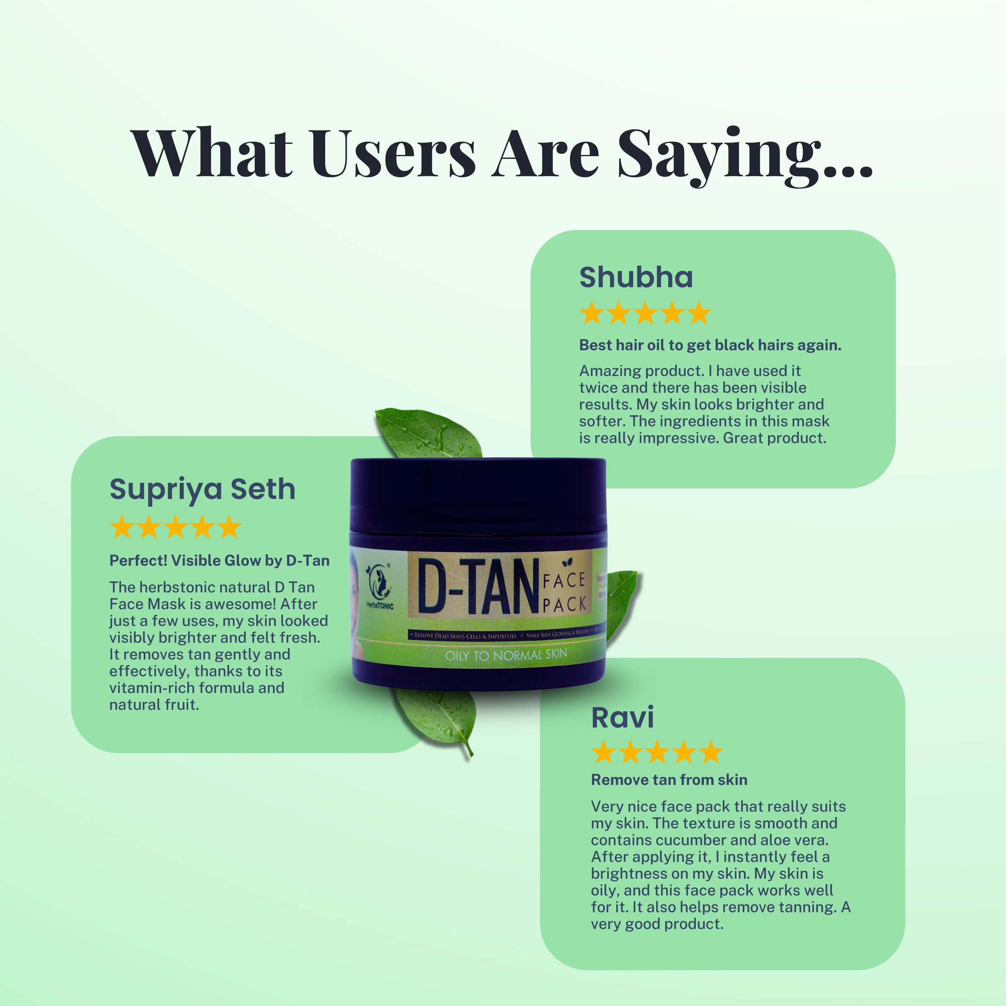 Experience a rejuvenating natural skincare ritual with HerbsTonic D-Tan Face Pack, an advanced formulation designed to combat sun damage, reduce tan, and reveal a brighter, more even complexion.