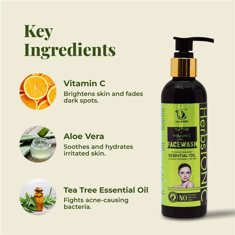 Reawaken your skin’s natural glow with HerbsTonic Aloe Vera Tea Tree Face Wash. Specially formulated with pure Aloe Vera and Tea Tree extracts, this gentle face wash cleanses deeply, hydrates, and helps fight breakouts for a clear, balanced complexion.