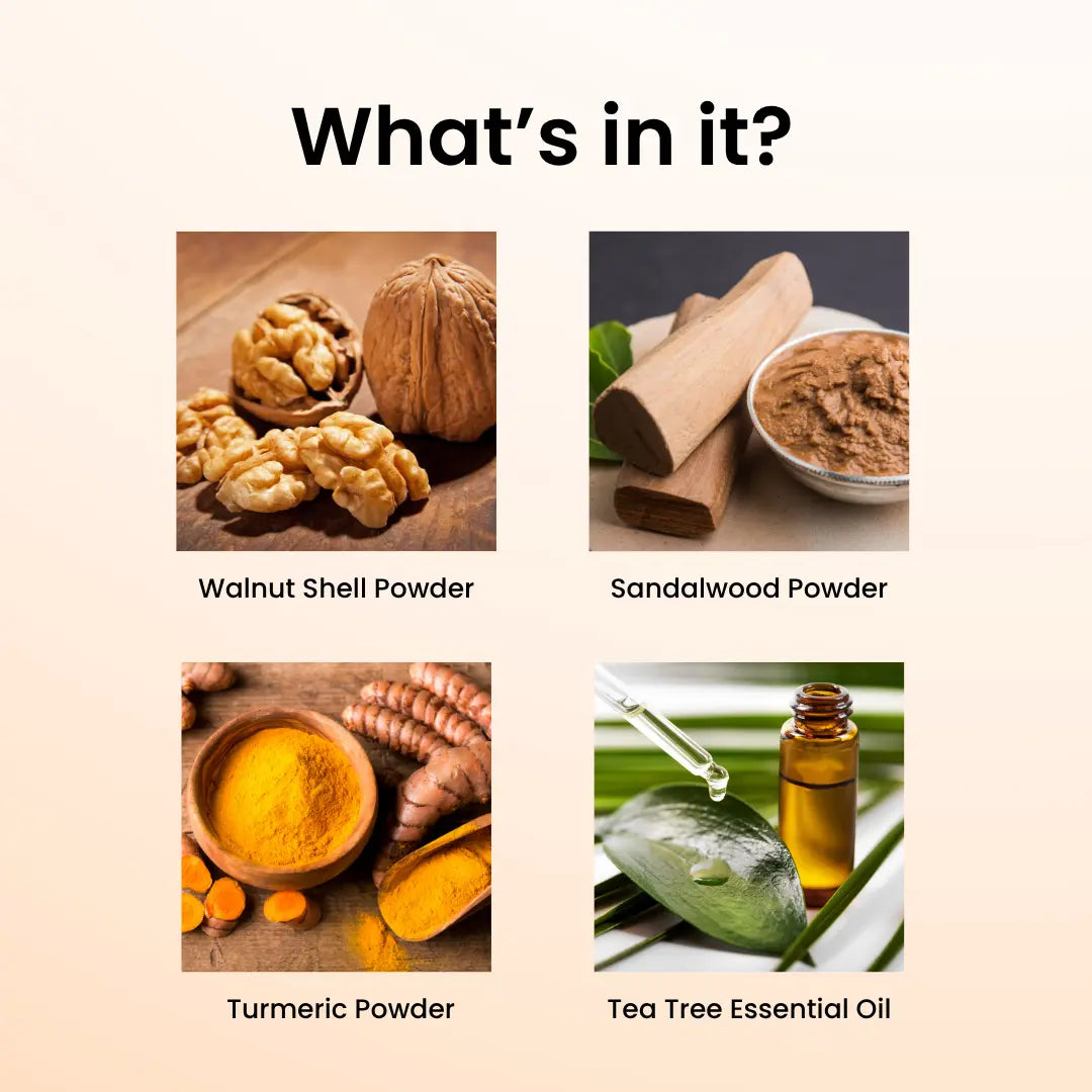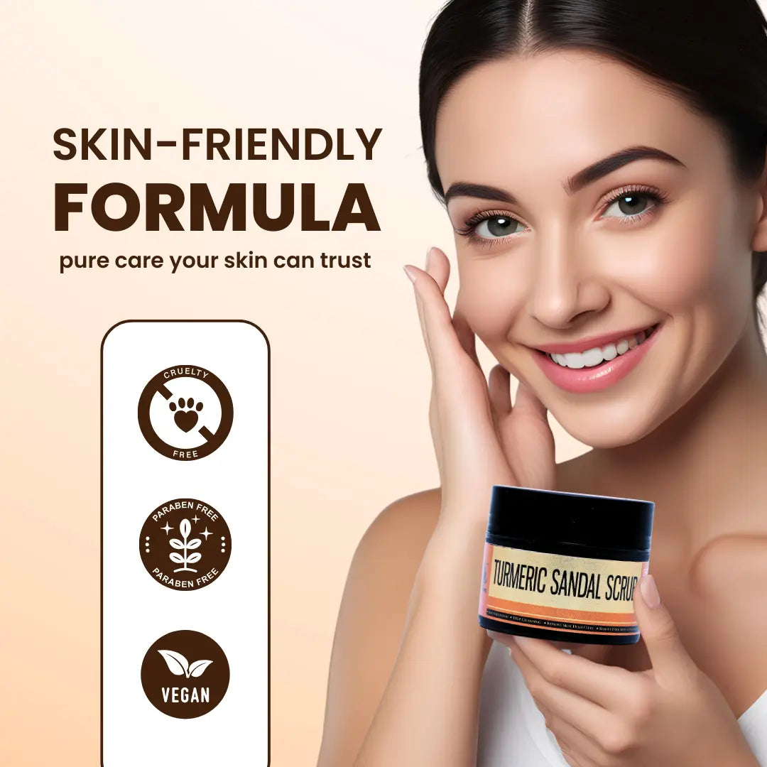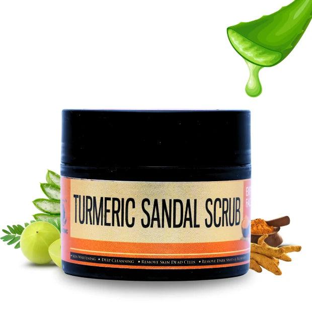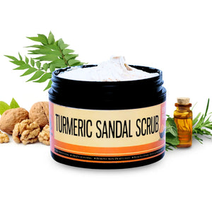Indulge in the rejuvenating touch of HerbsTonic's Turmeric Sandal Scrub, a unique blend that combines the age-old secrets of turmeric and sandalwood with modern natural skincare science.
